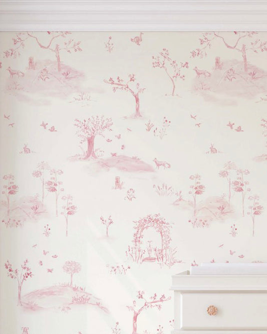 Papel de Parede Toile de Jouy Rosa