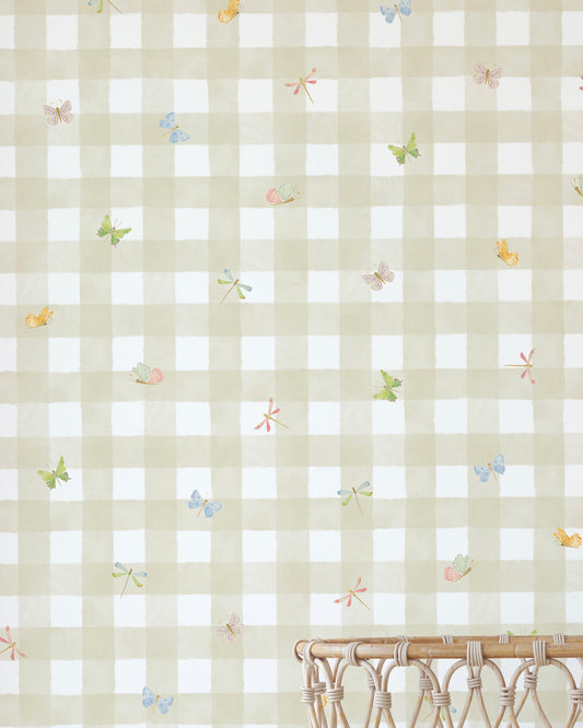Papel de Parede Vichy Borboletas