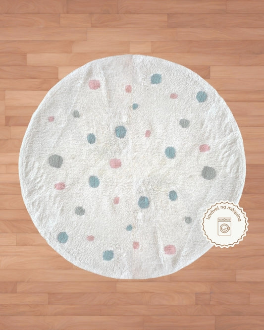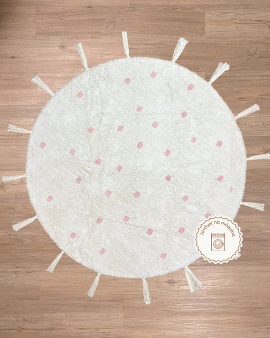 Tapete Lavável de Algodão Redondo Bolinhas Rosa