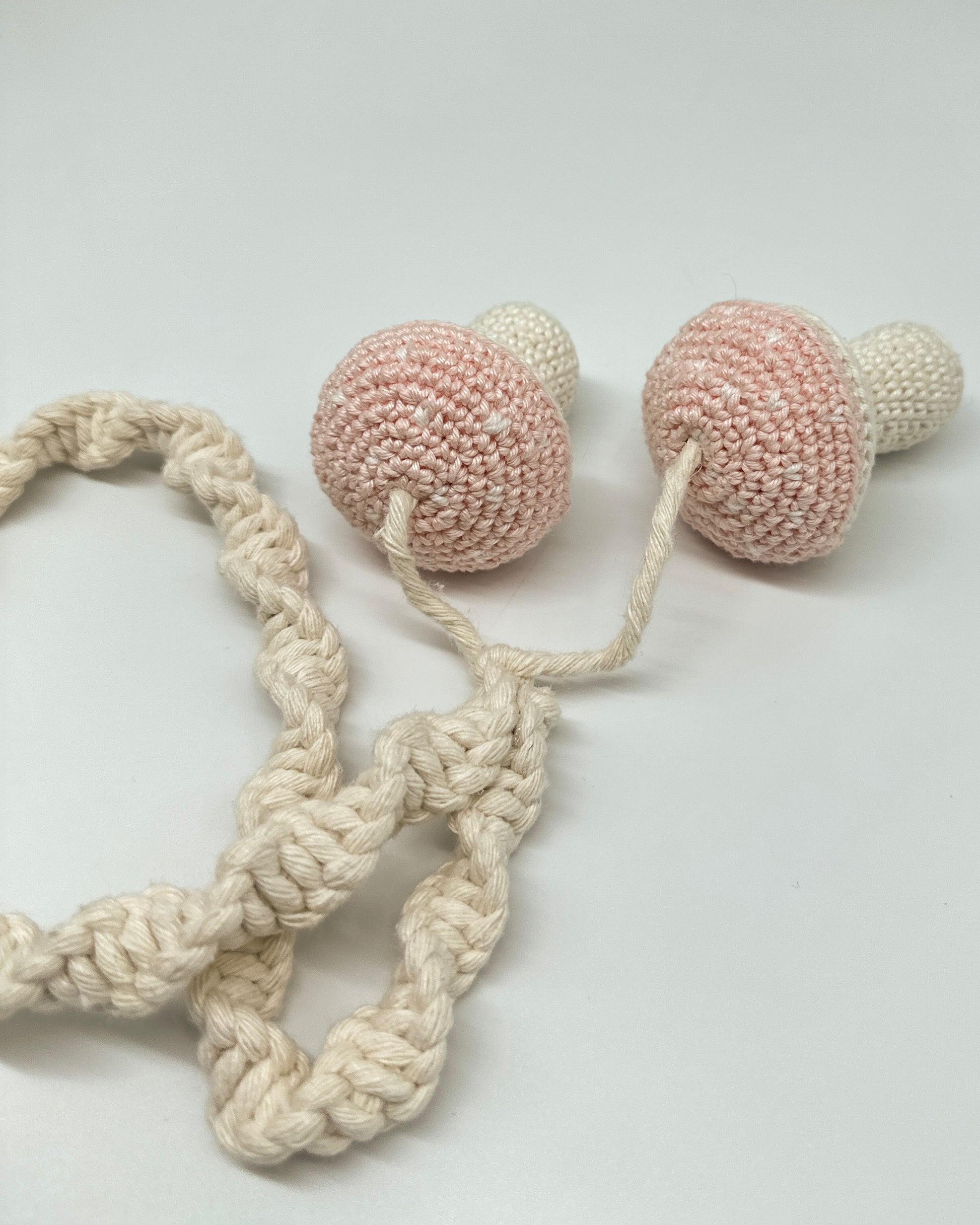 Este delicado Pingente de Cogumelos em Crochê é perfeito para adicionar um toque natural e artesanal à decoração de ambientes infantis.