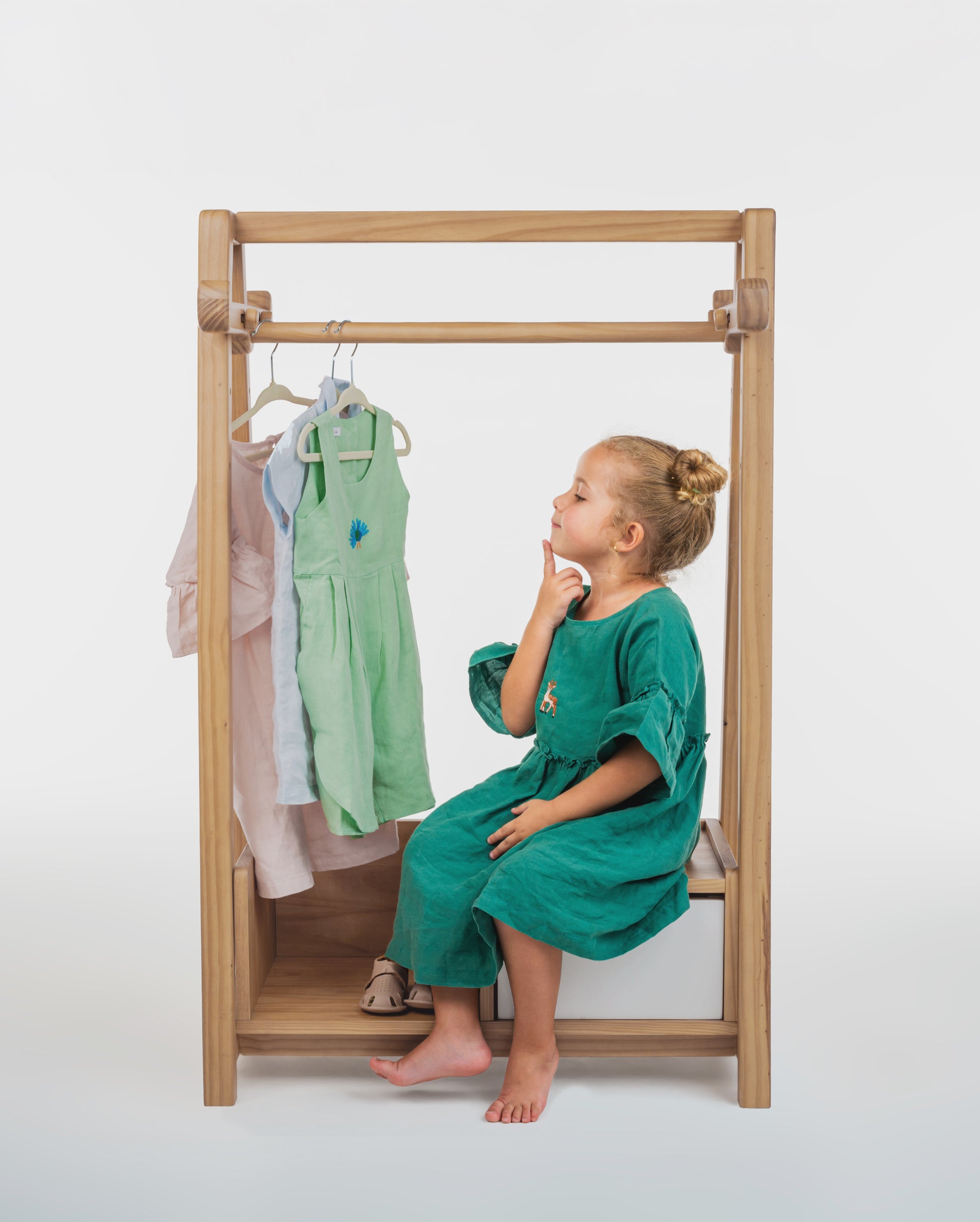 A Arara Evolutiva é a combinação perfeita entre funcionalidade, design Montessori e elegância, oferecendo uma solução prática e adaptável para a organização do quarto infantil. Projetada para crescer junto com a criança, ela incentiva a autonomia desde os primeiros anos, tornando o momento de escolher e guardar roupas uma experiência leve e intuitiva.