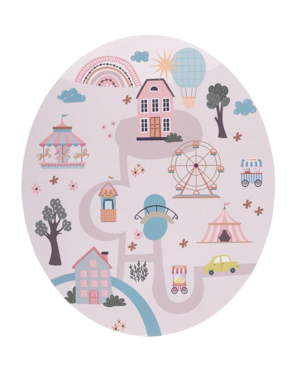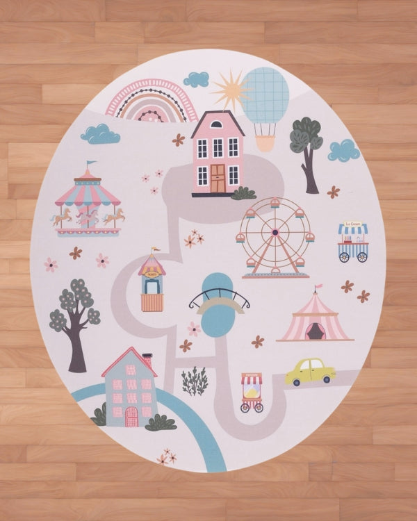 Transforme o espaço do seu filho com este playmat inspirado em um parque incrível! Com carrosséis, roda gigante e atrações, ele torna cada brincadeira uma aventura mágica. Com antiderrapante para segurança e isolante térmico para conforto, torna qualquer espaço acolhedor para brincar e aprender sem preocupações.