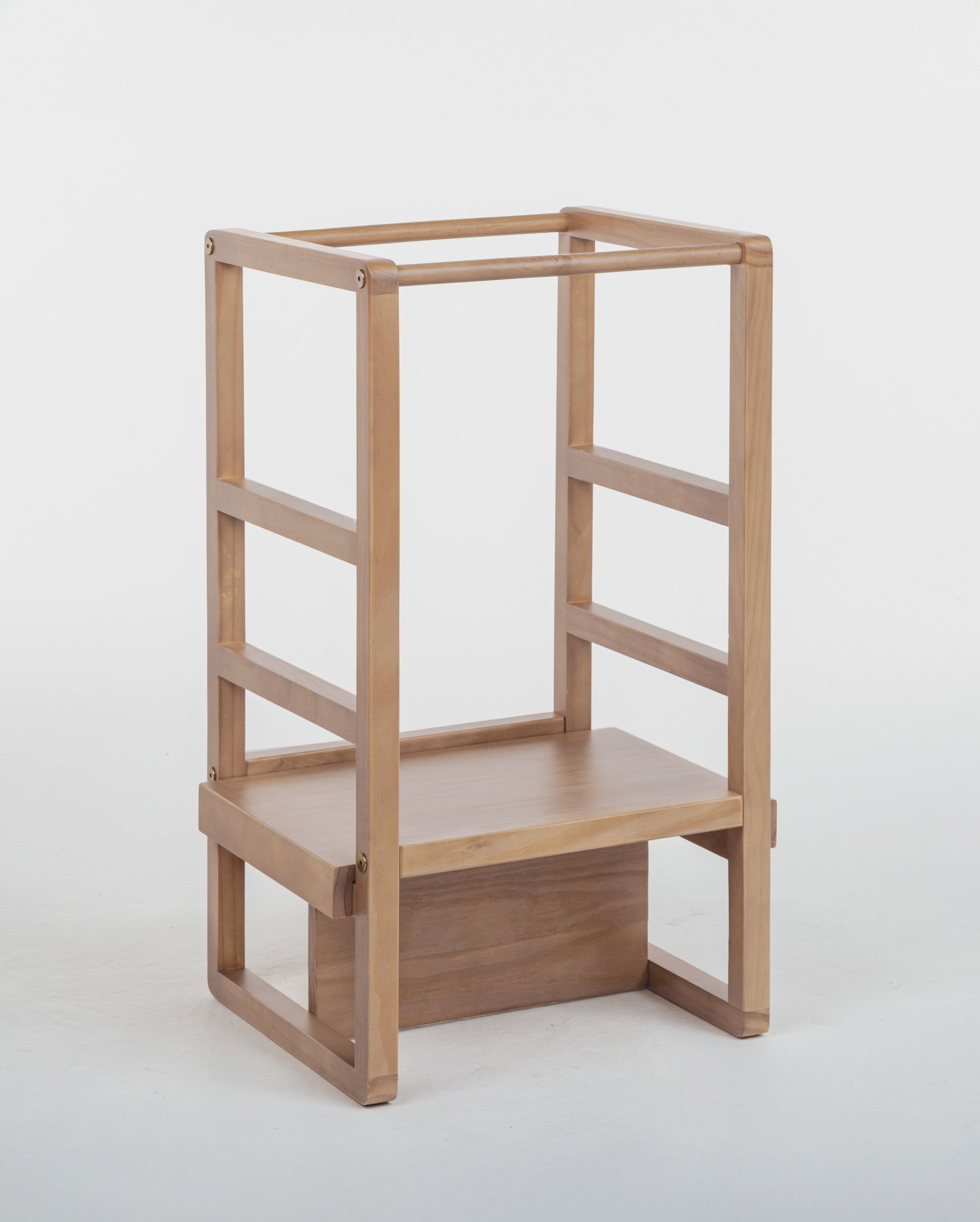 A Torre Montessori 4 em 1 é uma solução multifuncional para crianças de 1 a 7 anos, projetada para se adaptar às diferentes fases do crescimento infantil, estimulando a autonomia e o desenvolvimento enquanto proporciona segurança durante atividades cotidianas.