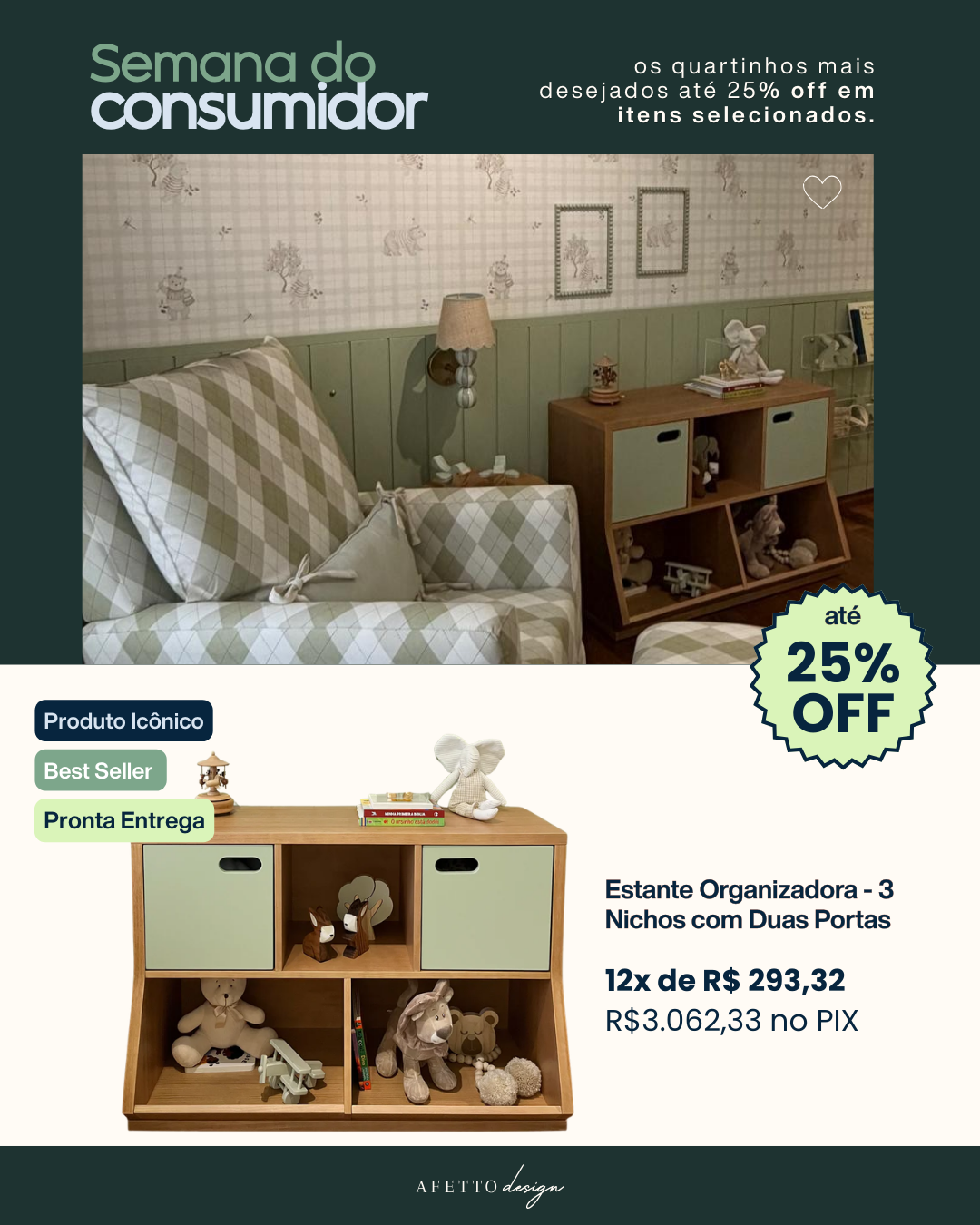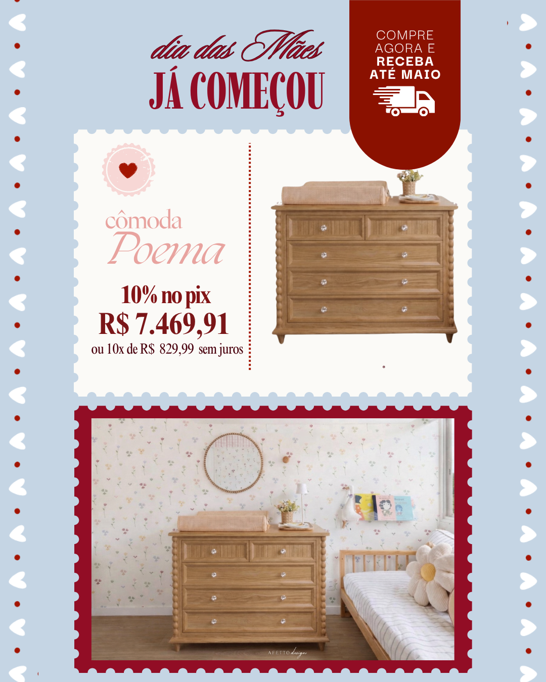 "Comprei uma cômoda linda na Afetto e fiquei encantada com o atendimento! Me deram todo o suporte, inclusive com vídeo mostrando o produto antes do envio. Entregaram tudo no prazo combinado, com muito cuidado e carinho nos detalhes."