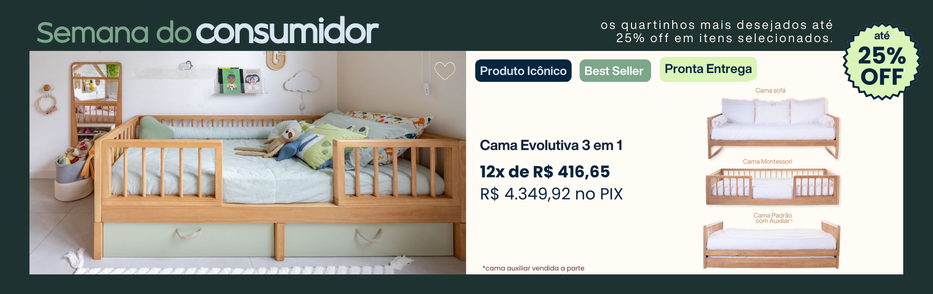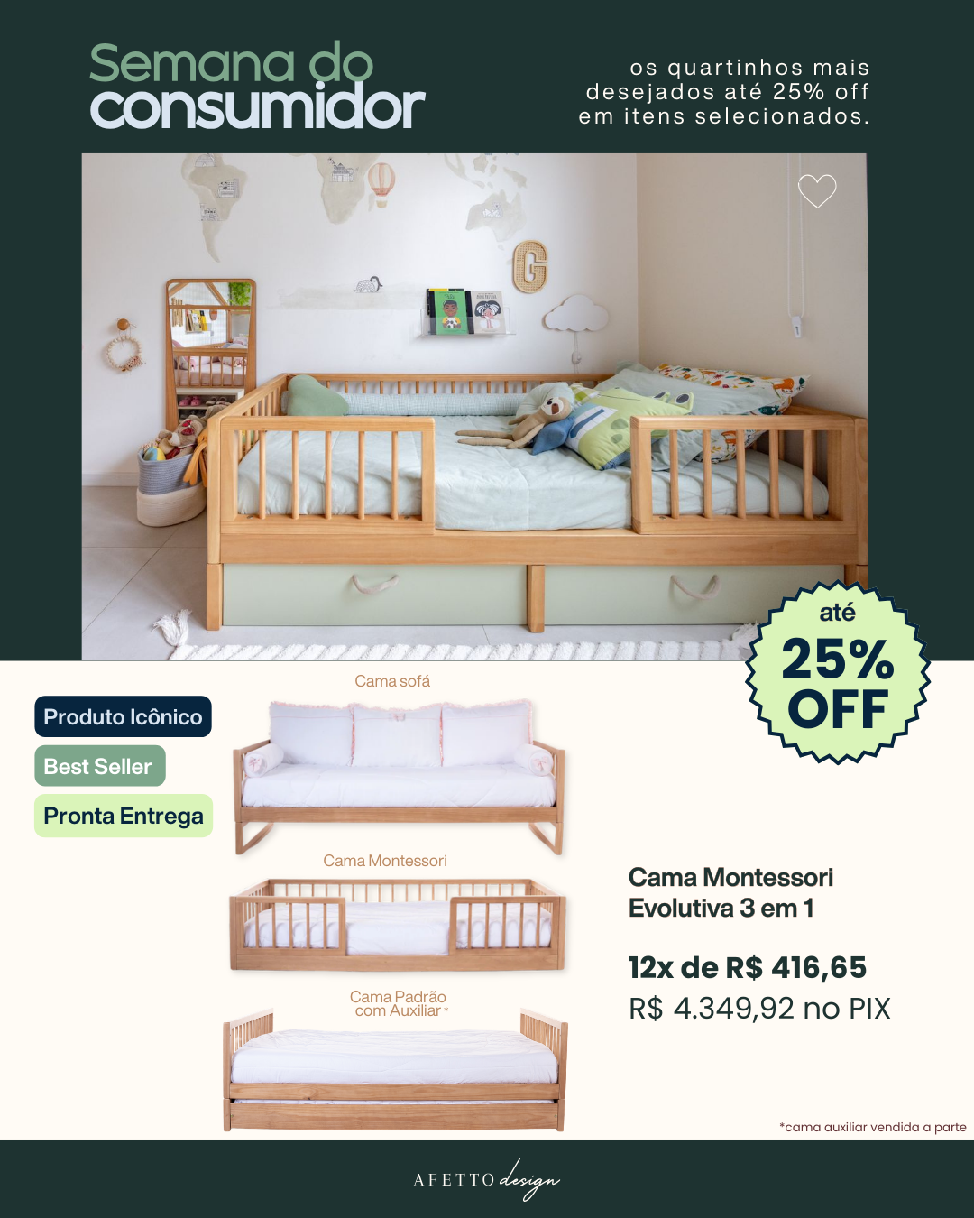 Cama Montessoriana Evolutiva – Design 3 em 1