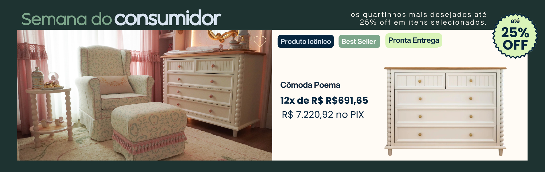 Peças selecionadas à pronta entrega para transformar o quarto hoje.