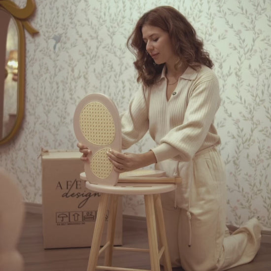 A Cadeira Borboleta combina um design encantador com o toque natural da palha, trazendo charme e personalidade para o quarto infantil.