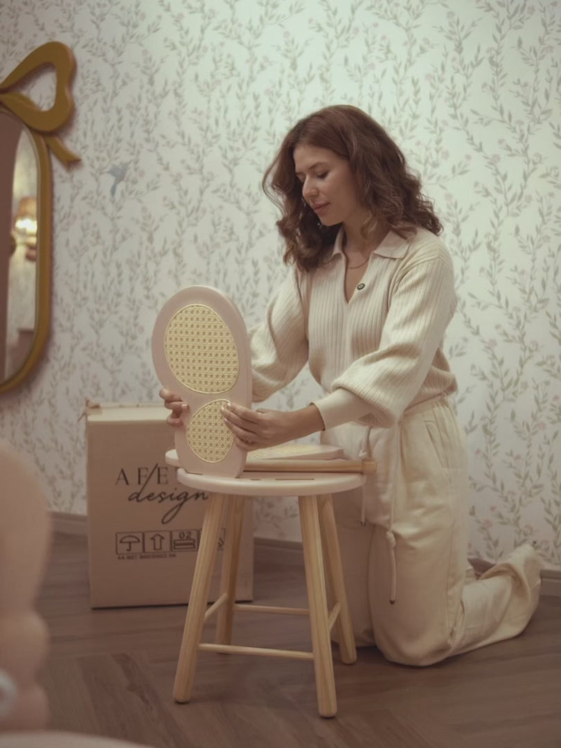 Com traços delicados e o charme da palha, a Cadeira Borboleta traz poesia ao dia a dia das crianças. Feita em madeira maciça, é resistente e delicada, transformando cada momento em um gesto de afeto.