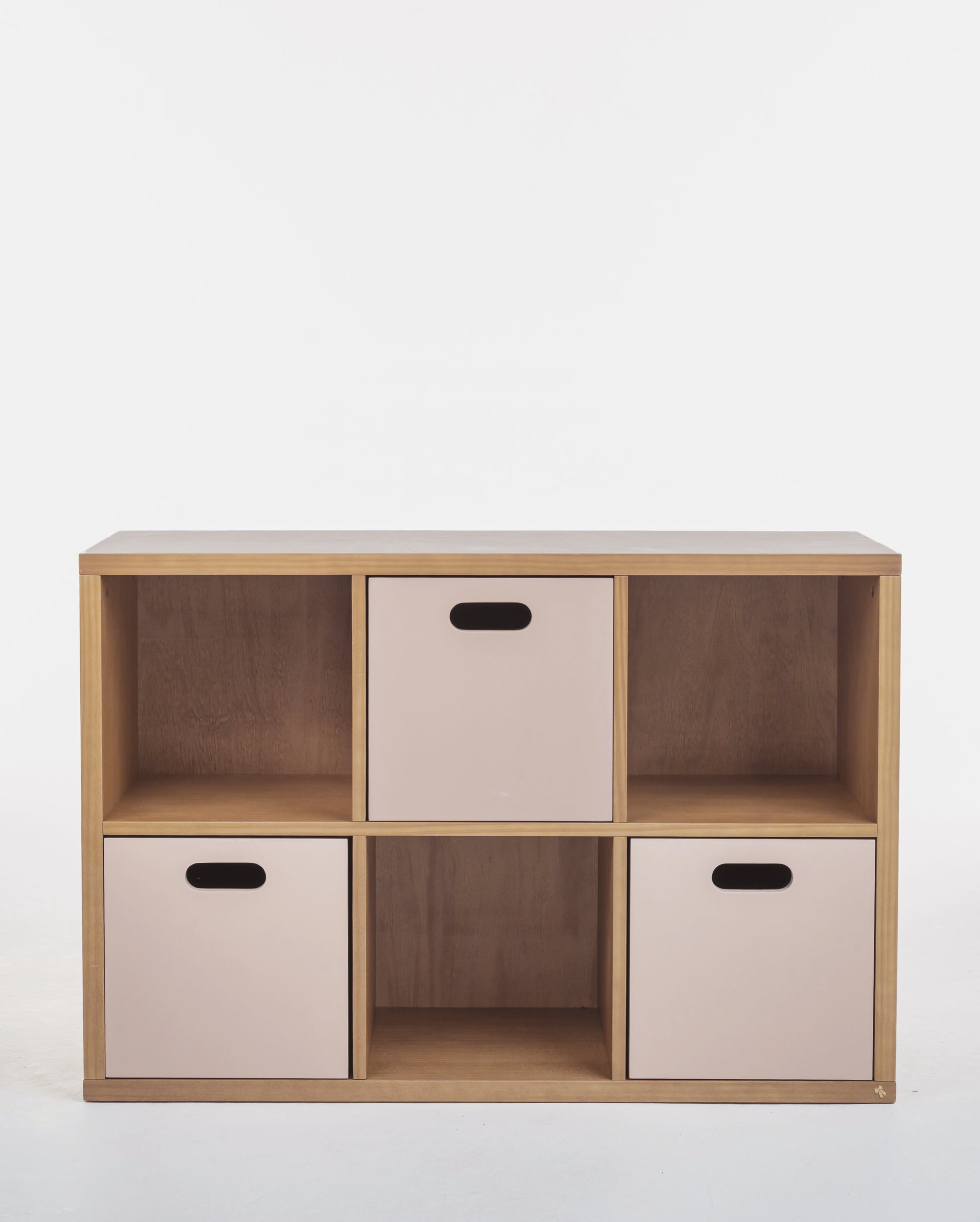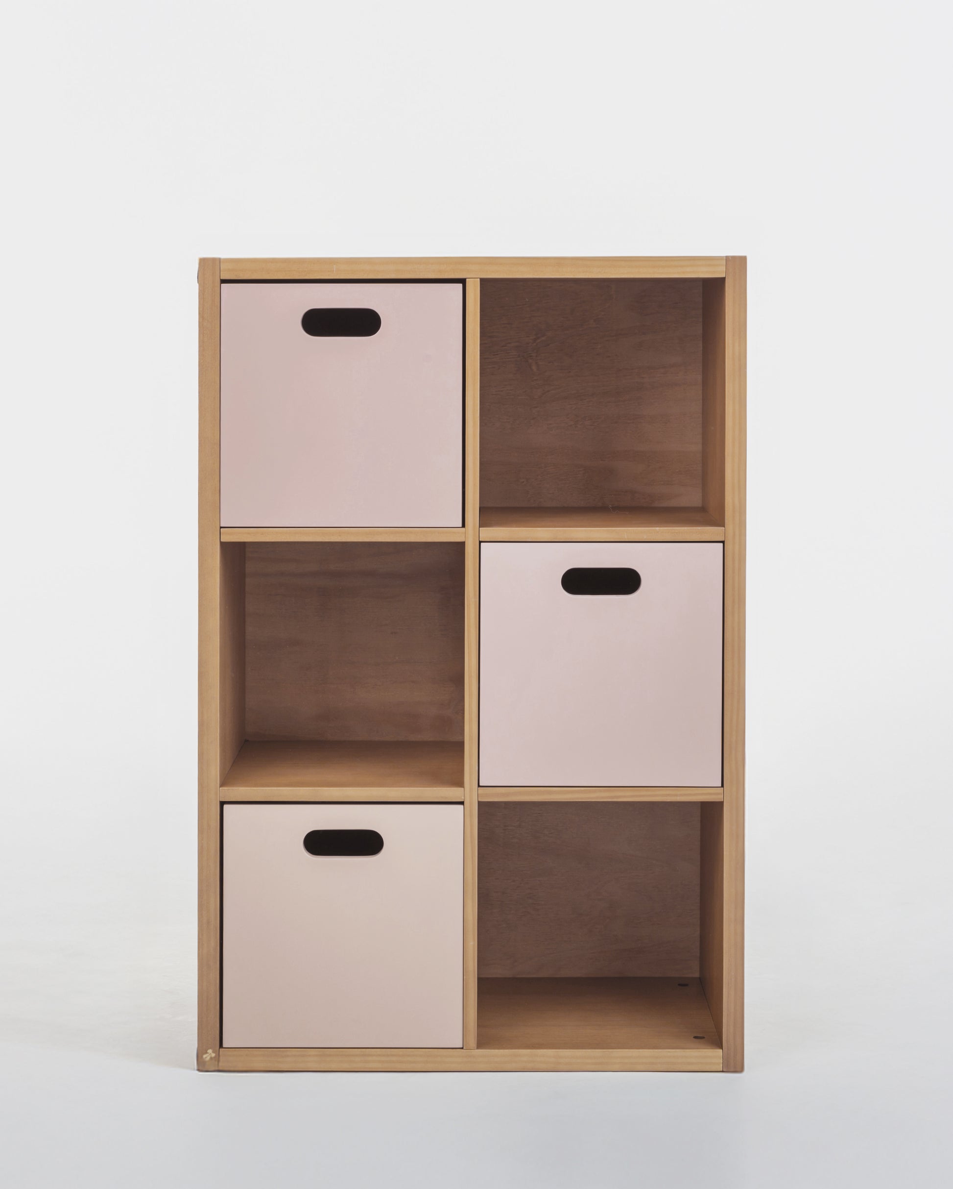 Com nichos espaçosos, a estante possibilita que a criança alcance seus objetos de forma independente, estimulando habilidades organizacionais e senso de responsabilidade. As caixas removíveis com cavas em ambos os lados tornam o manuseio simples e intuitivo, facilitando o transporte e incentivando o desenvolvimento da coordenação motora.
