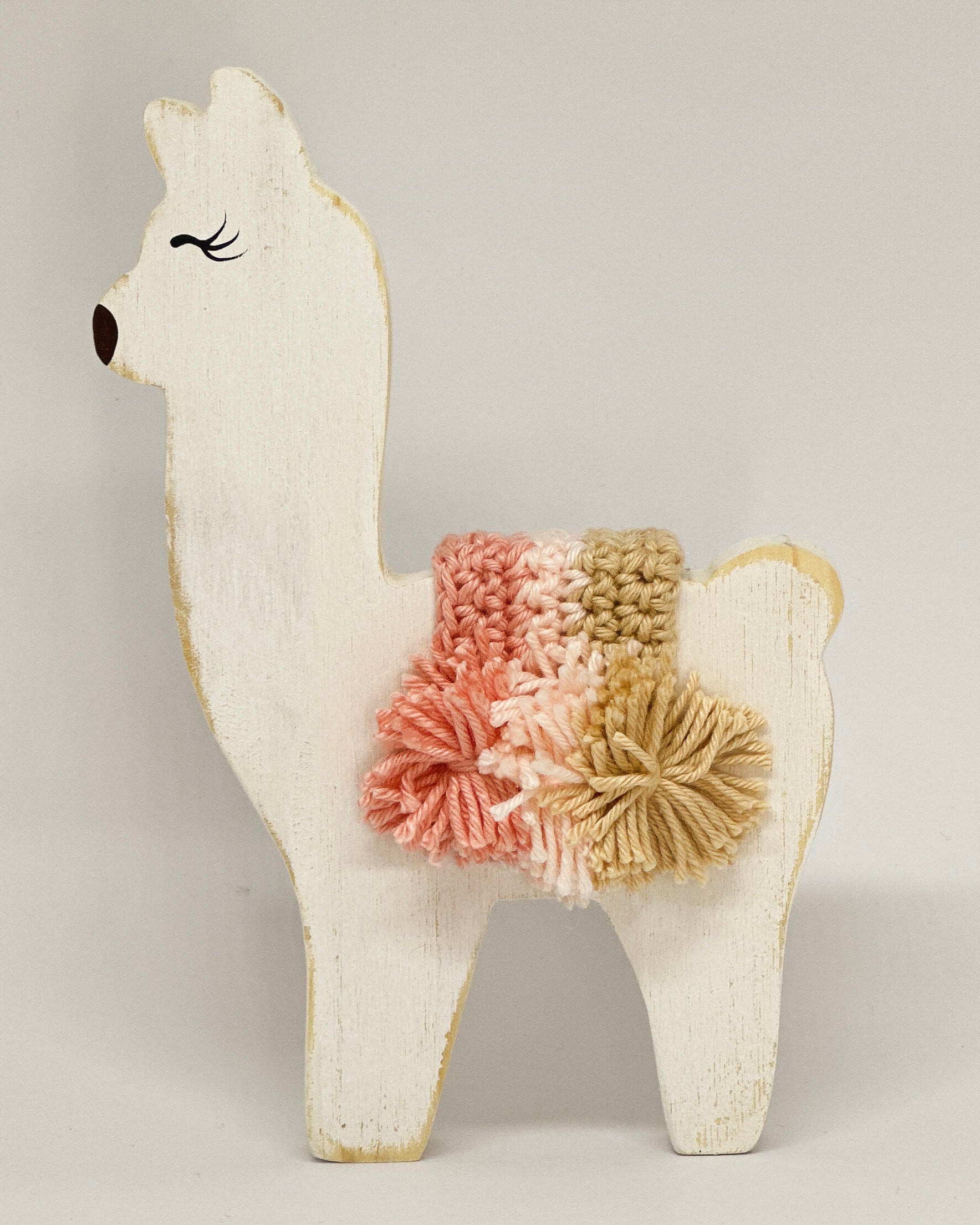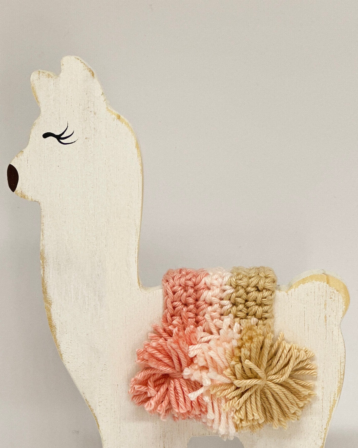 Encante-se com a delicadeza desta Lhama Decorativa em madeira, com acabamento em pátina que realça seu charme rústico e artesanal. Os detalhes de crochê adicionam um toque de sofisticação, tornando-a uma peça única e acolhedora para decorar e personalizar ambientes infantis.