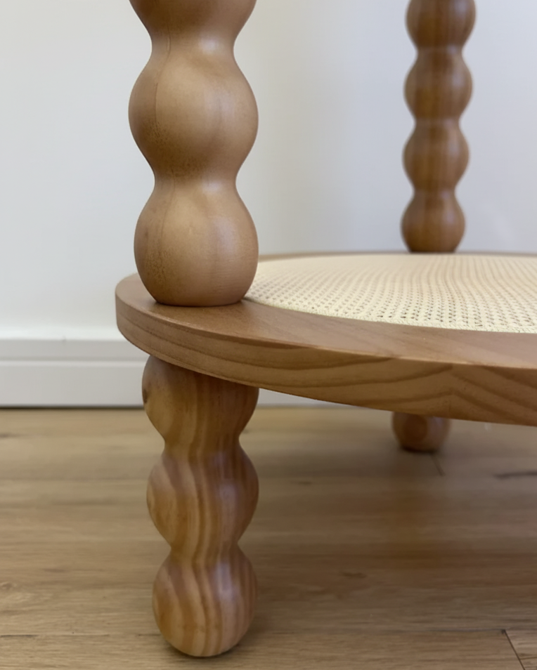 Delicada, versátil e encantadora, a Mesinha Lateral Poema conta com pés de bolinhas, que destacam seu design lúdico e sofisticado. Possui duas prateleiras circulares, que adiciona leveza e um acabamento artesanal cheio de personalidade.
