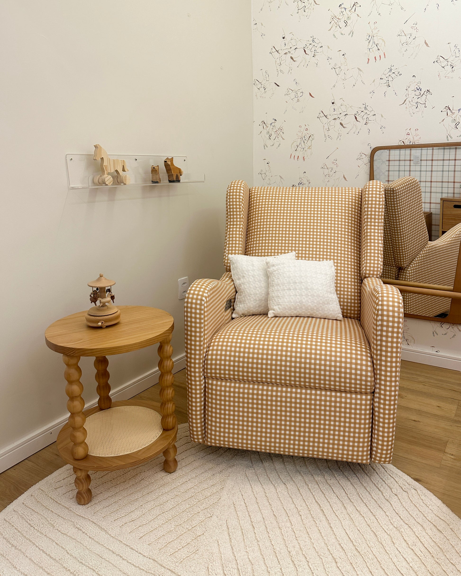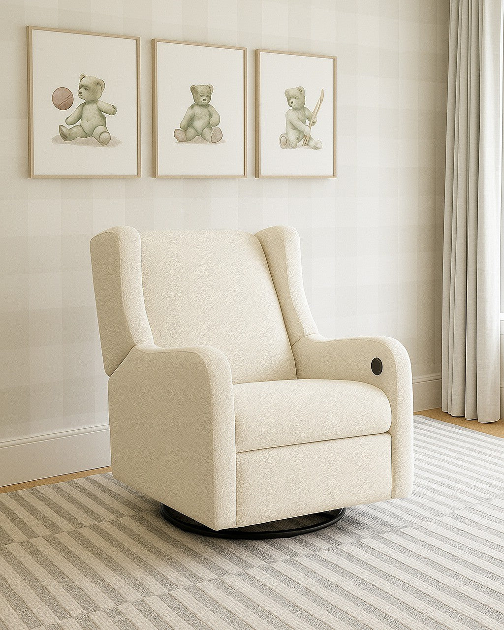 Combine com uma mesinha lateral para compor o espaço de amamentação ideal.