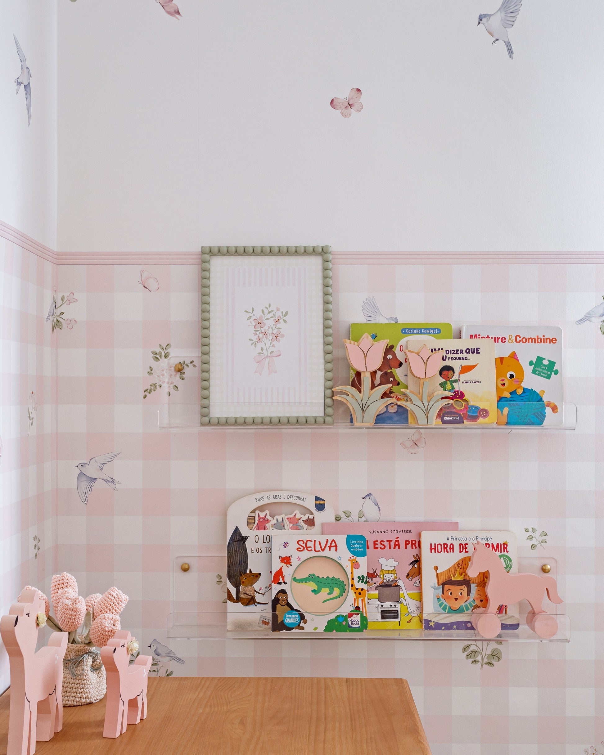 A Prateleira de Acrílico é uma solução leve e elegante para organizar o quarto infantil. Seu design transparente valoriza livros e objetos, mantendo a decoração suave. Uma peça funcional e delicada, pensada para compor o espaço com leveza e intenção.
