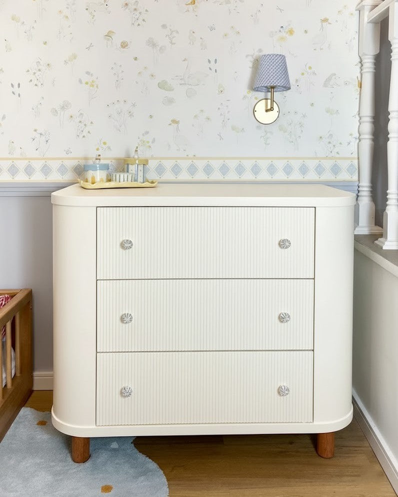 A cômoda Brisa coleção 1 exala um charme clássico e delicado, perfeita para compor ambientes acolhedores e repletos de suavidade.