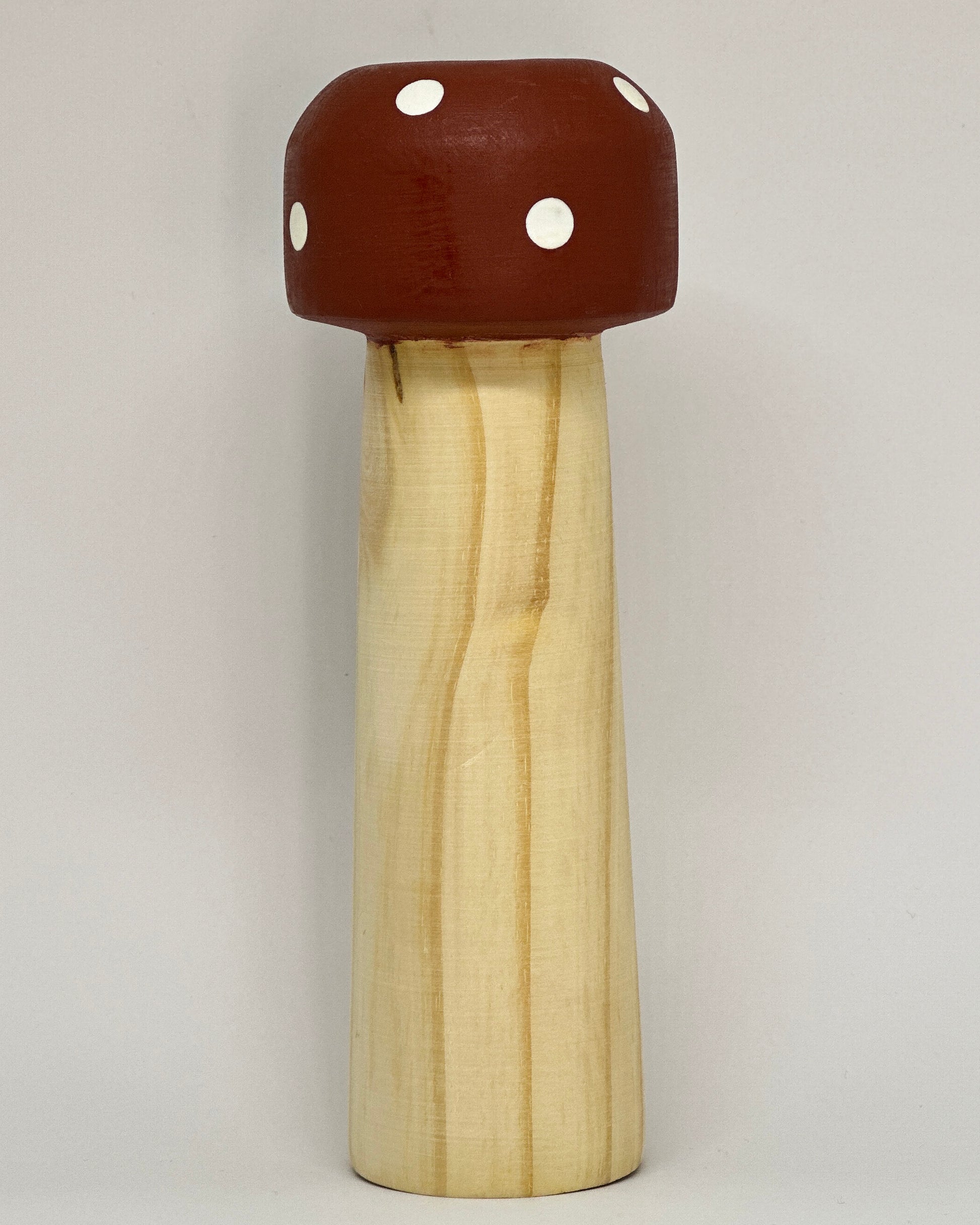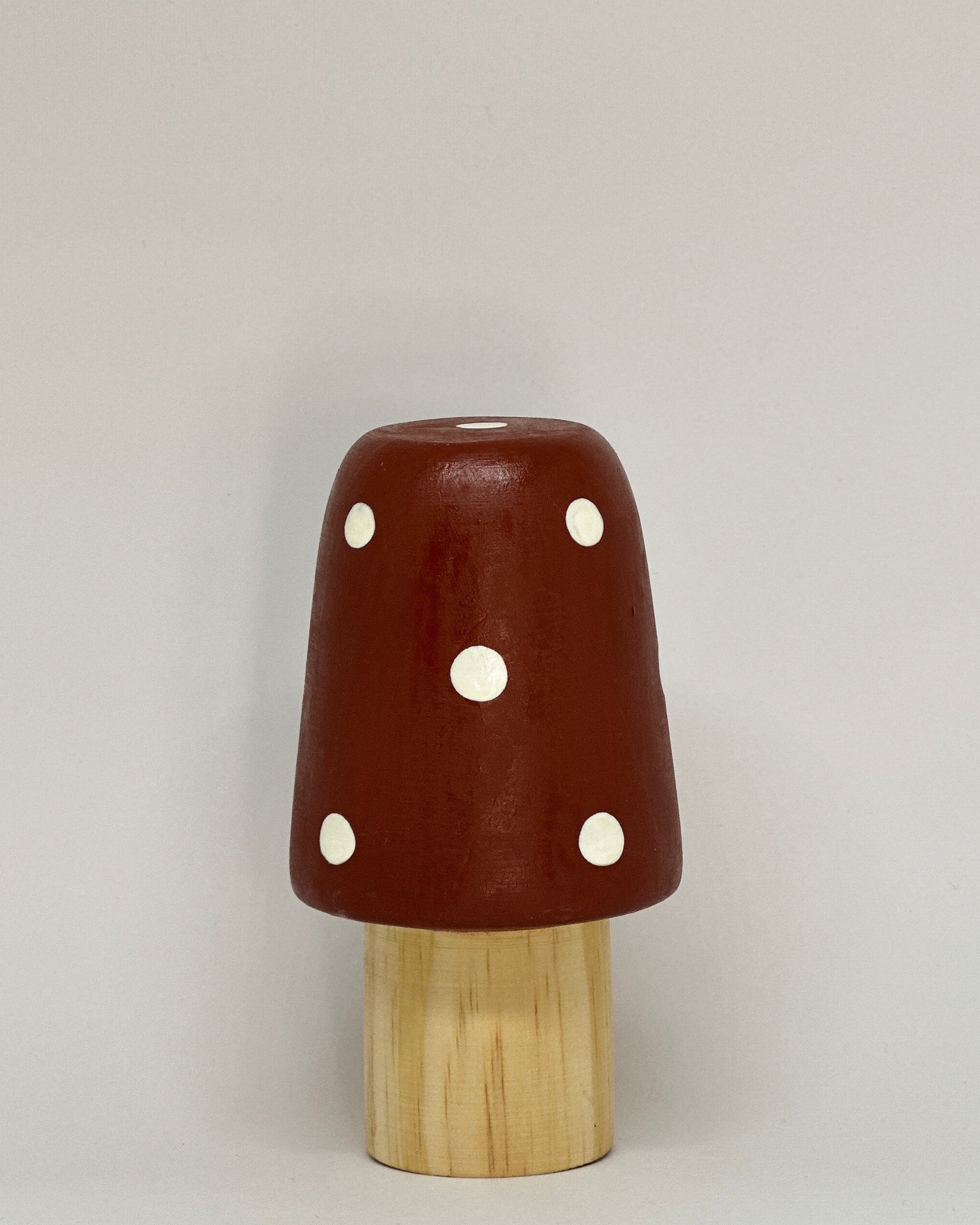 Adicione um toque lúdico à sua decoração com nossos encantadores cogumelos decorativos de madeira. Cada peça apresenta um tronco natural e um chapéu marsala com bolinhas brancas, criando um visual harmonioso e delicado. Perfeitos para ambientes infantis ou temáticos, esses cogumelos são irresistíveis e encantadores.