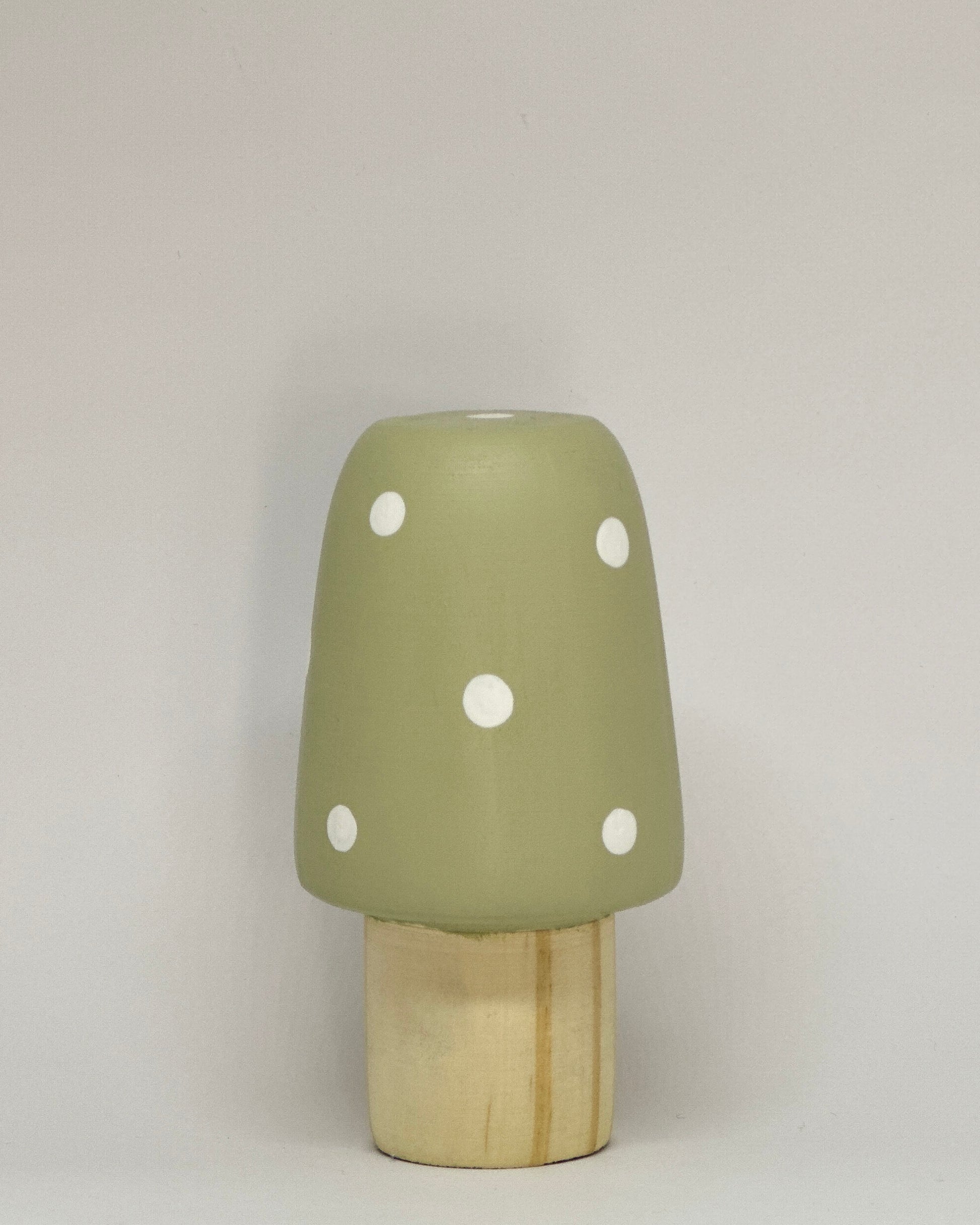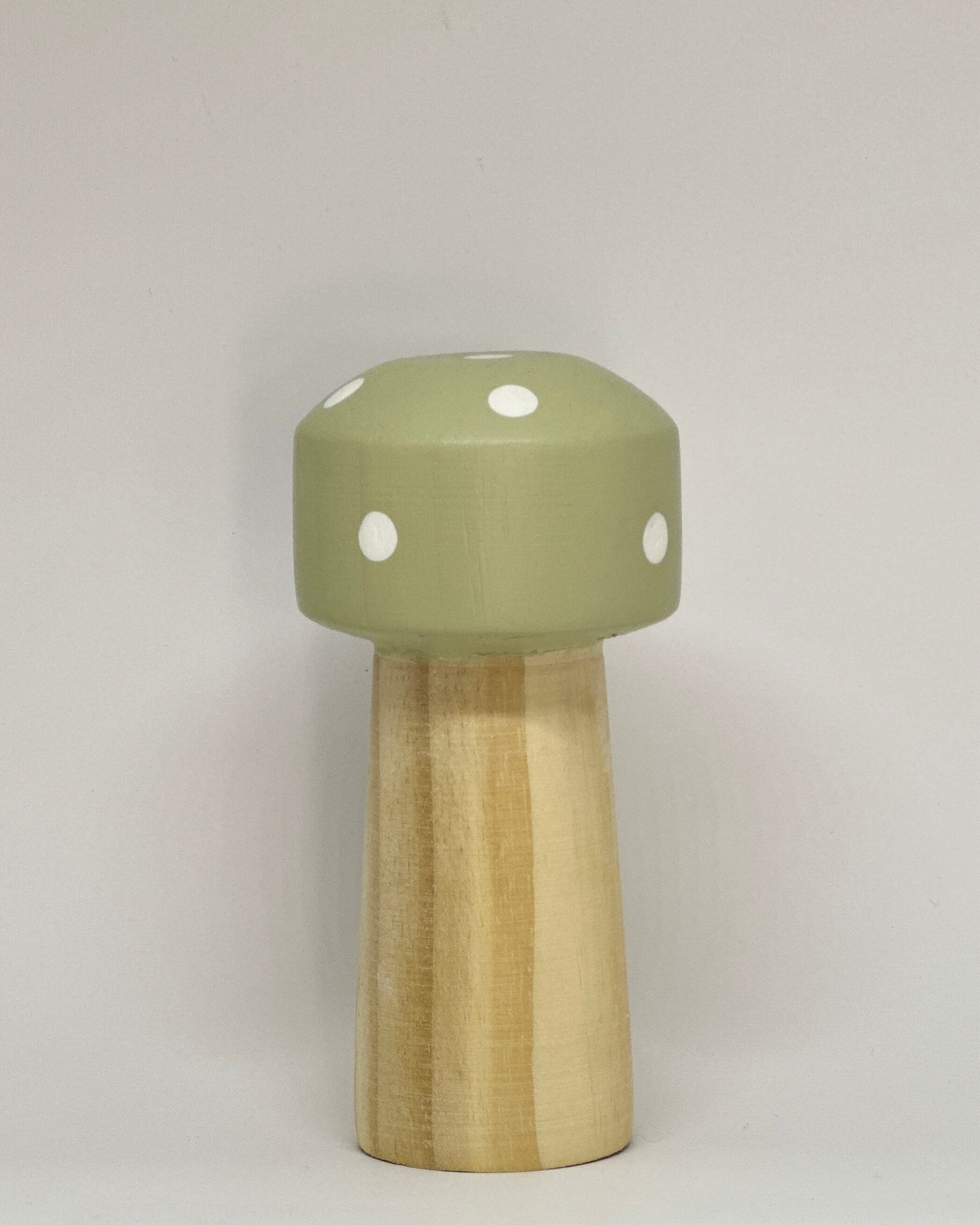 Adicione um toque lúdico à sua decoração com nossos encantadores cogumelos decorativos de madeira. Cada peça apresenta um tronco natural e um chapéu verde com bolinhas brancas, criando um visual harmonioso e delicado. Perfeitos para ambientes infantis ou temáticos, esses cogumelos são irresistíveis e encantadores.