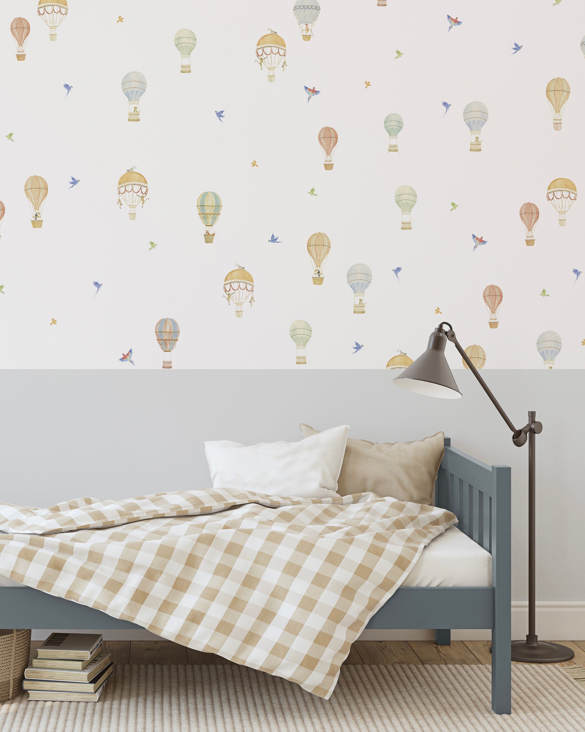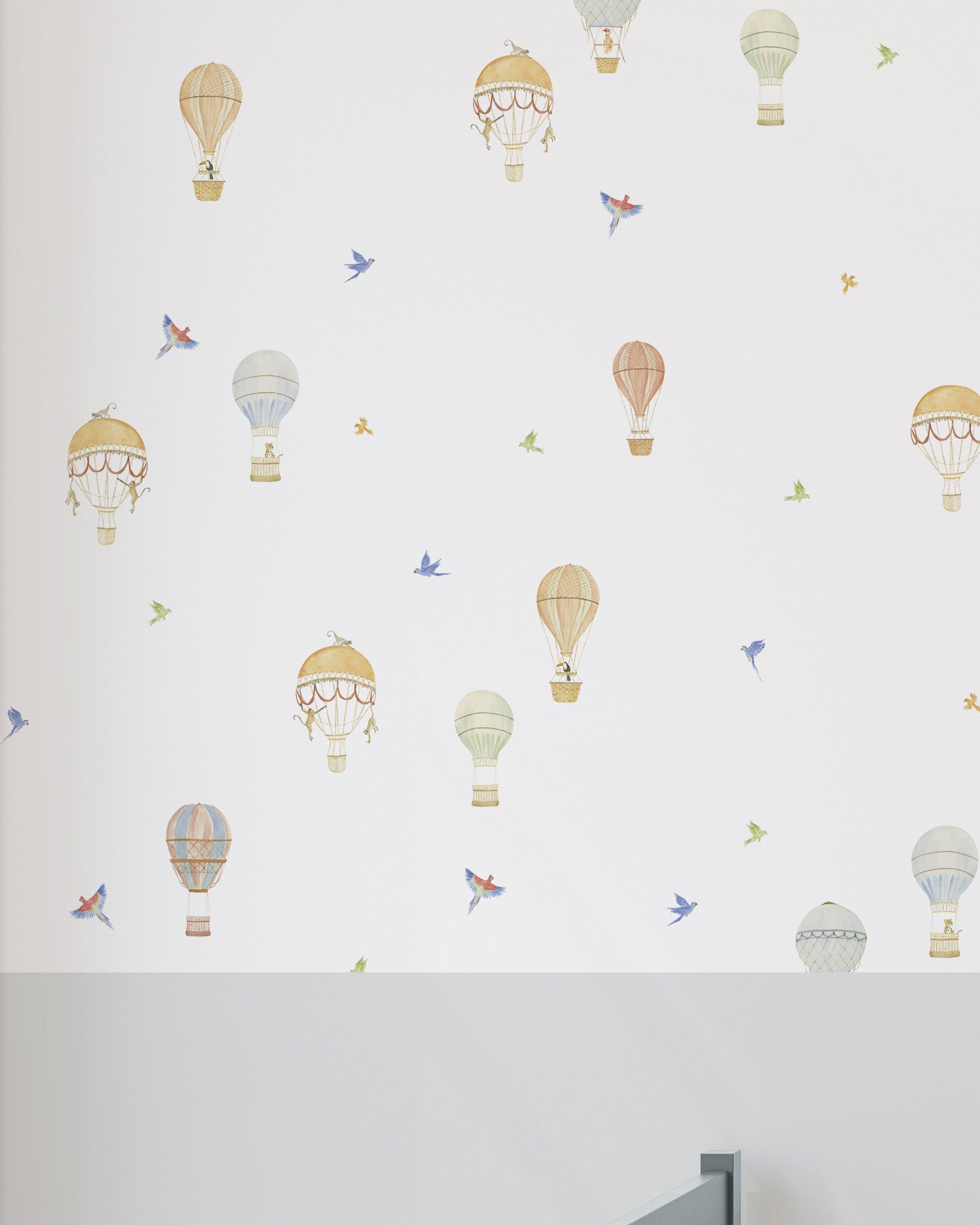 Com balões coloridos flutuando suavemente pelo céu, este design cria um ambiente lúdico e inspirador, perfeito para estimular a imaginação das crianças.
